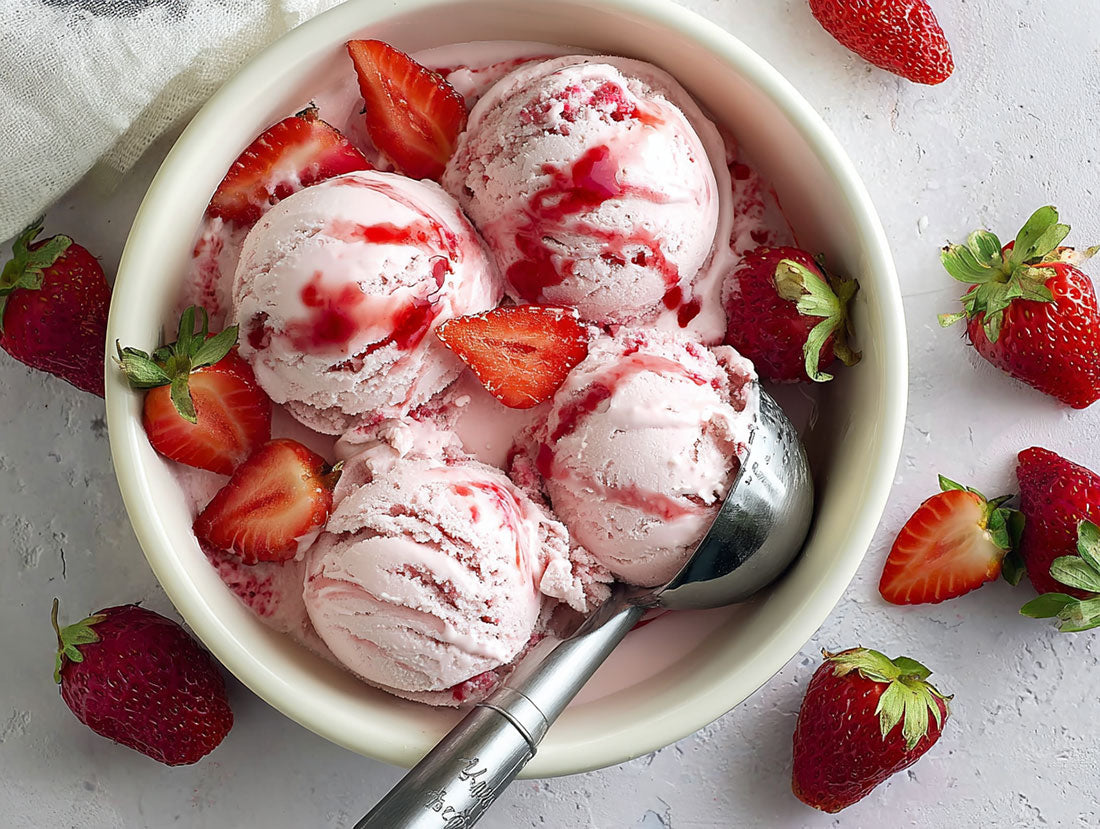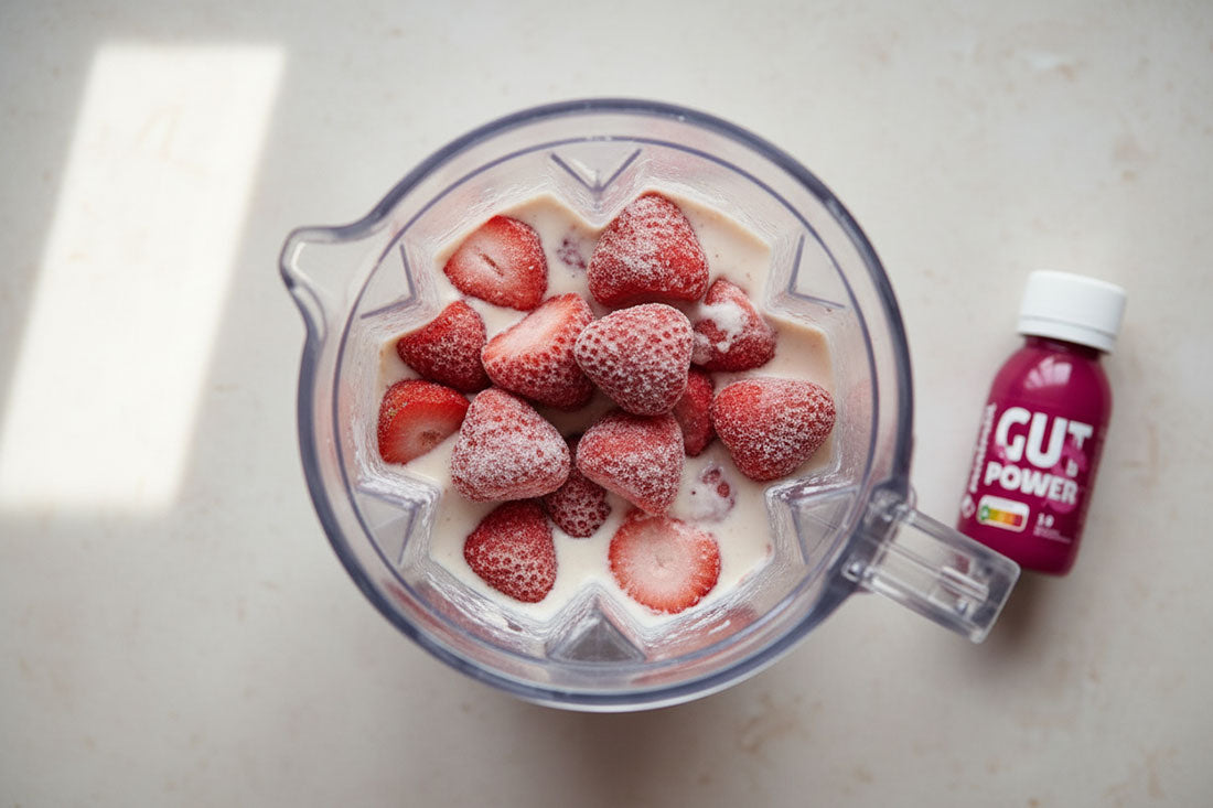 Frais, onctueux et intensément fruité, ce yaourt glacé se prépare en quelques minutes. Mixé avec des fraises surgelées, un yaourt végétal à la coco et un shot vivant de minimiil, c’est une pause ultra-rafraîchissante, aussi gourmande que nourrissante.