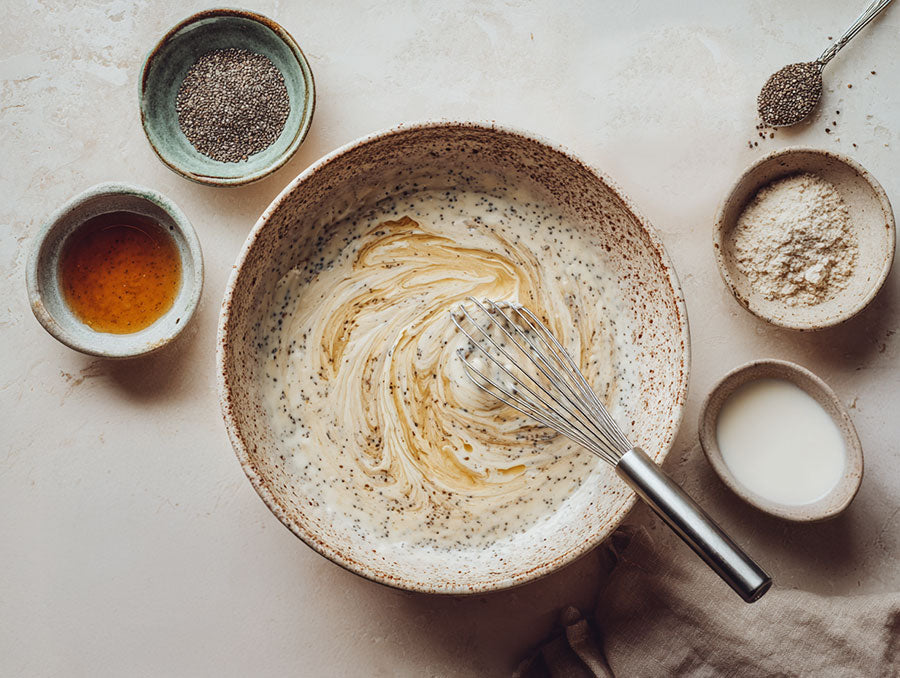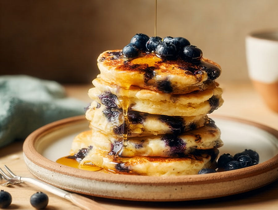 Light, thick, and full of plant-based goodness, these blueberry pancakes are a weekend essential with a gut-friendly twist. The chia seeds add fiber and texture, while the almond milk and coconut oil keep every bite light and nourishing. Best served warm with a drizzle of maple syrup and a handful of fresh blueberries for that extra boost of natural antioxidants.